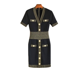 2025 nuovi arrivi estivi da donna con scollo a V a maniche corte Casual Mini abito lavorato a maglia in filo dorato abito lavorato a maglia da donna
