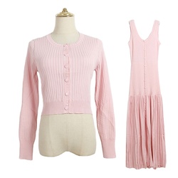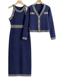 2025 nuovo arrivo Cardigan lavorato a maglia autunno manica lunga da donna all'ingrosso con abito Midi Casual due pezzi