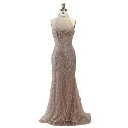 2025 di perle di lusso con perline pesanti Sexy trasparente sirena abito da sera abito da sposa abito da sera