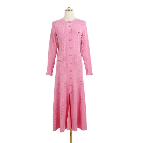 2025 nuovo autunno moda di alta qualità a maglia da donna abito lungo elegante a maniche lunghe abito stile francese