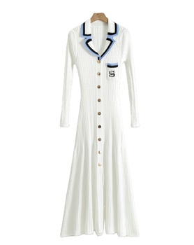 2025 nuovi arrivi autunno donna abito lungo Casual Slim Fit lavorato a maglia con colletto blazer maglioncino Maxi abito da donna