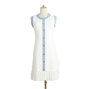 2025 stile primavera estate abito Patchwork in Denim senza maniche da donna monopetto Mini abito corto aderente in maglia sottile